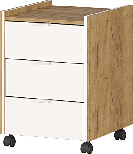Germania Rollcontainer 4148-242 GW-Indianapolis, in Navarra-Eiche-Nachbildung/Weiß, ideal für Home Office, 42 x 58 x 47 cm (BxHxT)
