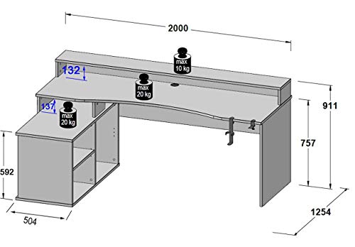 TEZAUR 4B Gaming Desk Computertisch mit LED-Beleuchtung, von Forte