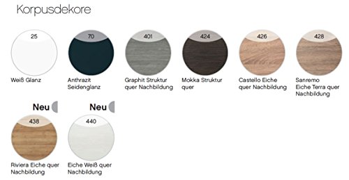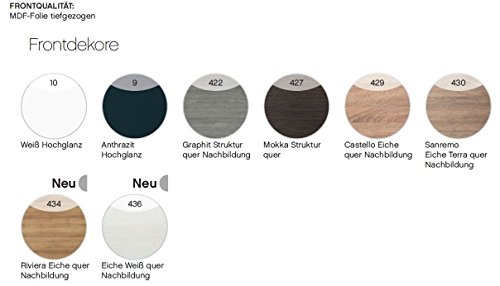 Korpusausführung: Comfort N = Schubkasten mit Metallzarge und Softeinzug, Korpus mit 1,0 mm Kante inkl. Türdämpfer, Abdeckkappe für Schrankaufhänger