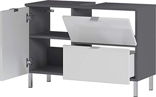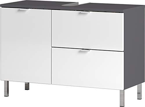 Germania Badezimmer-Set 8338-569 GW-Mauresa, bestehend aus Waschbeckenunterschrank, Spiegel und Schrank, im Dekor Graphit/Weiß
