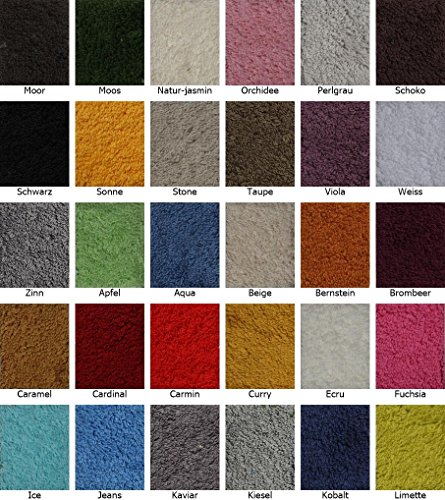 Badteppich Grace von Rhomtuft Der Badteppich Grace ist ideal, wenn Sie einen flachen, saugfähigen Teppich suchen. Der Grace ist eine zeitlose, elegante Lösung, wenn Sie eine ruhige Atmosphäre in Ihrem Badezimmer schaffen möchten. Aber Sie können auch mit entsprechend kräftigen, strahlenden Farben eine frische, fröhliche Stimmung in Ihr Bad bringen.Bringen auch Sie Eleganz in Ihr Bad, mit den brillanten Badteppichen von Rhomtuft. bei 60° waschbar trocknergeeignet Florhöhe ca. 10 mm 100% Baumwolleca. 1800 g/m² Alle Farben auf einen Blick: Wissenswertes über Rhomtuft: Rhomtuft kann auf über 50 Jahre erfolgreiche Firmengeschichte zurückblicken.Vier Maxime prägen die Firma: Tradition - Innovation - Qualität - Individualität.Die Rhomtuft Badteppiche sind nicht schnellebig und werden Ihnen lange Freude bereiten. Die Rhomtuft Badteppiche zeichnen sich durch ihre hochwertige Qualität aus, die auch nach Jahren des Gebrauchs immer noch überzeugt. Wenn Sie auf der Suche nach hochwertigen, edlen Badteppichen sind, können wir Ihnen die Rhomtuft Badteppiche aus ganzem Herzen empfehlen.Die Manufaktur ist das Herzstück von Rhomtuft. Die Mitarbeiterinnen und die Mitarbeiter fertigen mit viel Liebe und handwerklichem Geschick Badteppiche aus Baumwolle, Polyacryl- und Polyamidgarn. Accessoires aus verschiedenen Hölzern, Woll-Filz und edle Frottierwaren runden das Produktportfolio von Rhomtuft ab.Verarbeitet werden ausschließlich hochwertige Materialien. Zeitloses, klassisches Design in Verbindung mit modischen Trends bestimmen die Rhomtuft Manufaktur.