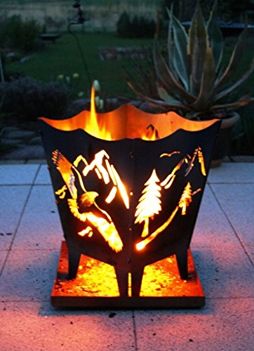 Feuerkorb * Alpen * Feuerkorb aus 2,00 mm Stahlblech Gewicht: ca. 12,00 kg Artikel: INS12340_S Maße Feuerkorb: * Höhe ca. 480 mm * ca. 380 x 380 mm oben * ca. 255x255mm unten Aschekasten: * ca. 420 x 420 x 30 mm Sollte mal etwas nicht zu Ihrer Zufriedenheit laufen bitte ich Sie uns vor einer negativen Bewertung zu kontaktieren. Wir lösen das Problem. Versprochen ! Hinweis Feuersäule aus Stahl: Gefertígt werden die Feuersäulen aus unbehandeltem Stahlblech. Dieses Stahlblech setzt mit der Zeit Rost an. Es entsteht nach kurzer Zeit der "Deko - Rosteffekt". Lassen Sie die Feuersäule nicht auf Terrassenbelägen oder gepflasterten Flächen stehen, da es insbesondere bei Regen zu Abwaschungen des Rostes kommt und auf den Belägen "Rostflecken" hinterlässt. Beim Befeuern mit Holz entstehen, immer in Abhängigkeit der verwendeten Holzart und -menge, sehr hohe Temperaturen. Durch diese hohen Temperaturen kann es vereinzelt, auch bei den von uns verwendeten Blechstärken, zu leichten Verformungen des Stahlbleches kommen. Dieser Vorgang ist normal und hat keinen Einfluss auf die Haltbarkeit des Feuerkorb. Bei der thermischen und mechanischen Bearbeitung dieser Bleche entstehende Bearbeitungsspuren (Verfärbungen und leichte Kratzer) lassen sich nicht vermeiden und werden von uns nicht beseitigt, da diese keinen Einfluss auf die Funktionsfähigkeit des Produktes haben.