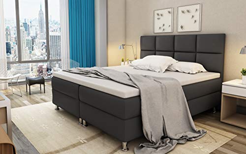 - Das formschöne Boxspringbett Amsterdam 180x200 cm verspricht traumhafte und erholsame Stunden, Leichte Montage - Luxus Design Made in Germany, Holzrundgestell, einer 21 cm federkern-Matratze einer hochwertigen Kaltschaum Topper