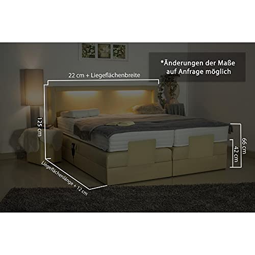 PAARA Boxspringbett Barcelona GM | 10.000 Newton Motorleistung | LED | Antirutsch-Matten | Taschenfederkern Matratze | Kaltschaum Topper | Jedes Bett EIN Unikat - Made in Germany (120 x 200 cm)