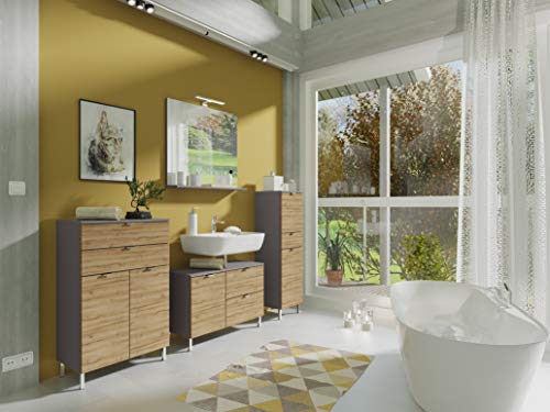Germania Kommode 8531-564 GW-MAURESA, in graphit/grandson-Eiche-Nachbildung, zwei Schubkästen, 60x97x34 cm (BxHxT)