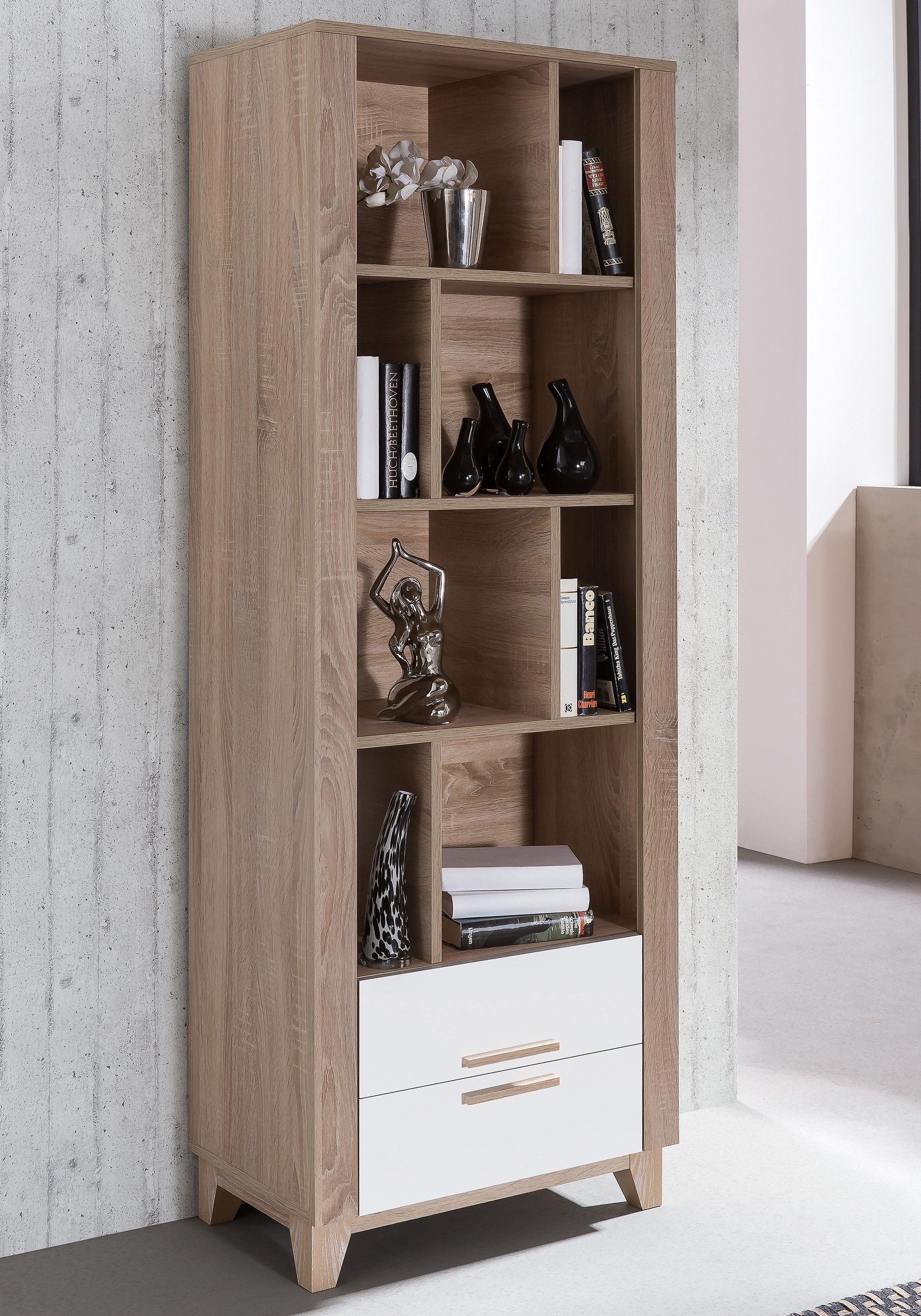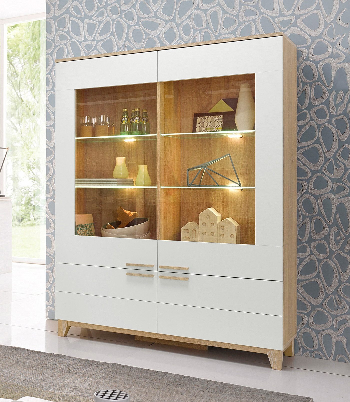 Germania Standvitrine Gw-Oslo | In Weiß mit Absetzungen in Sanremo Eiche | 98 x 135 x 40 cm | 2291-221