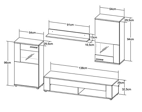 - 4 tlg. Set besteht aus: Standvitrine, Wandboard, Hängevitrine und TV-Lowboard